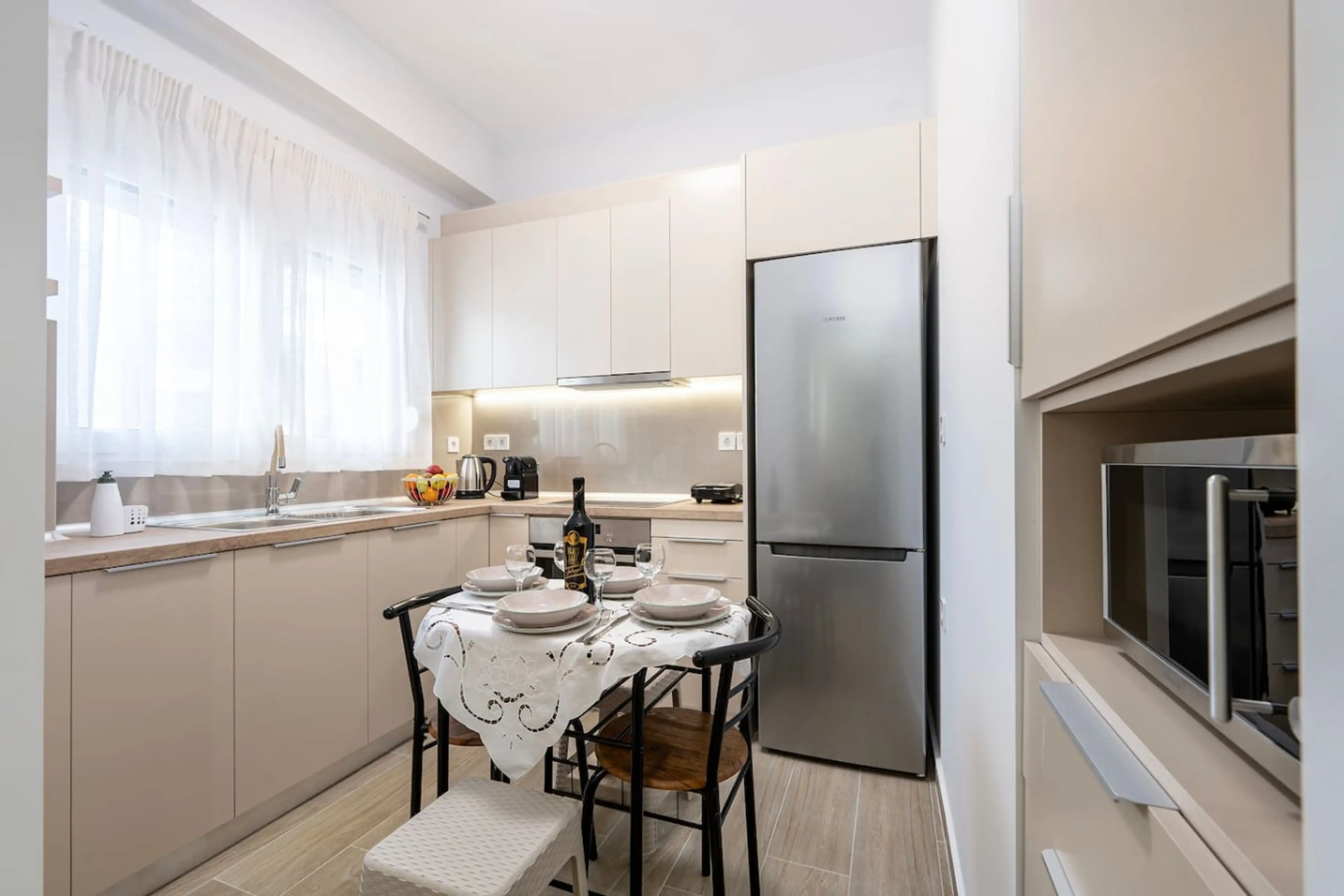 Experience modern Aegean living at Port Cyan Suite. This renovated space offers a clean, functional design just a short walk from the Akti Kountourioti waterfront. You are perfectly placed near the small port, Neratzia Castle, and the Plane Tree of Hippocrates. The suite features a full kitchen, a w...