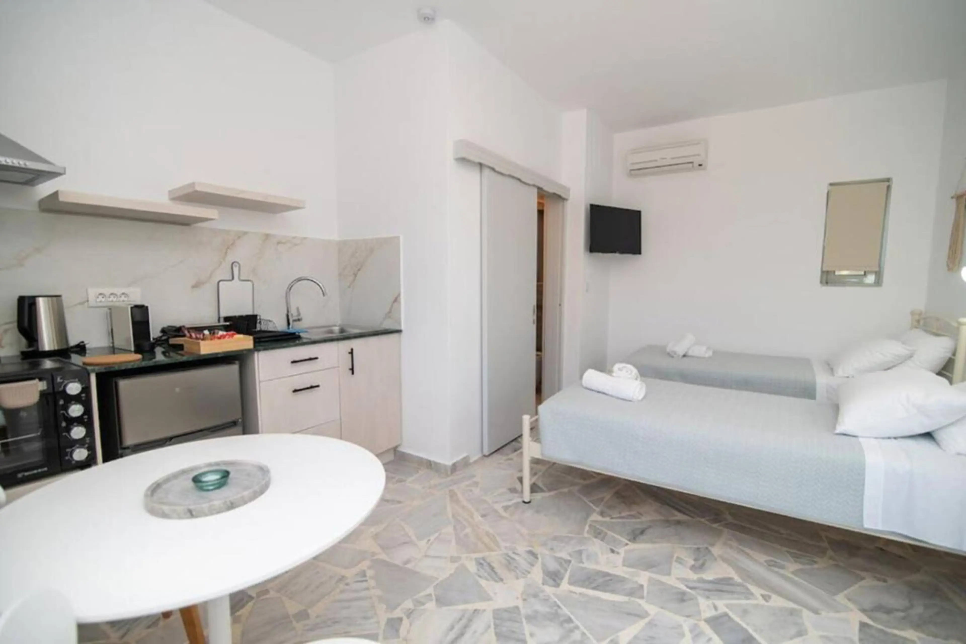 Thines Studios – Cozy Coastal Retreat in Kampos ✔ STEPS FROM THE SEA – Located in the heart of Kampos, just a short walk to the sandy beach and crystal-clear waters ✔ COMPACT & COMFORTABLE – Smartly designed 21 sqm studios that maximize space for a relaxing stay ✔ INTIMATE OUTDOOR NOOK – A personal ...
